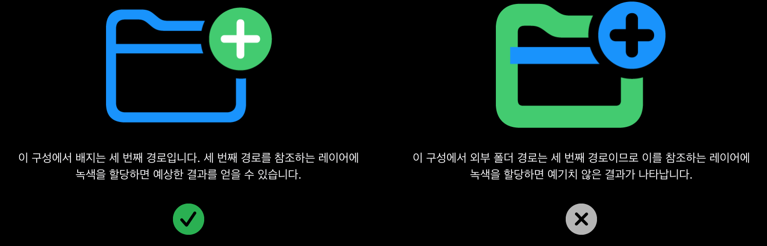 또한 어떻게 레이어를 구성할지도 중요하다. 한 번에 바뀌었으면 하는 색은 하나의 레이어로 구성하는 것은 기본이다.