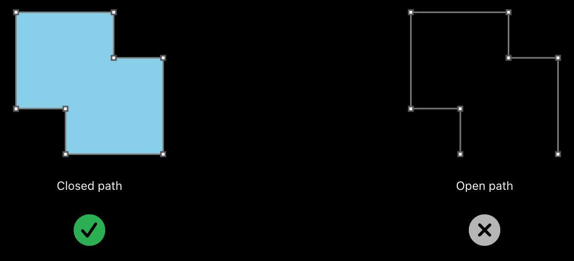 당연히 색을 채우려면 아래 왼쪽 그림과 같은 닫힌 경로여야 한다.